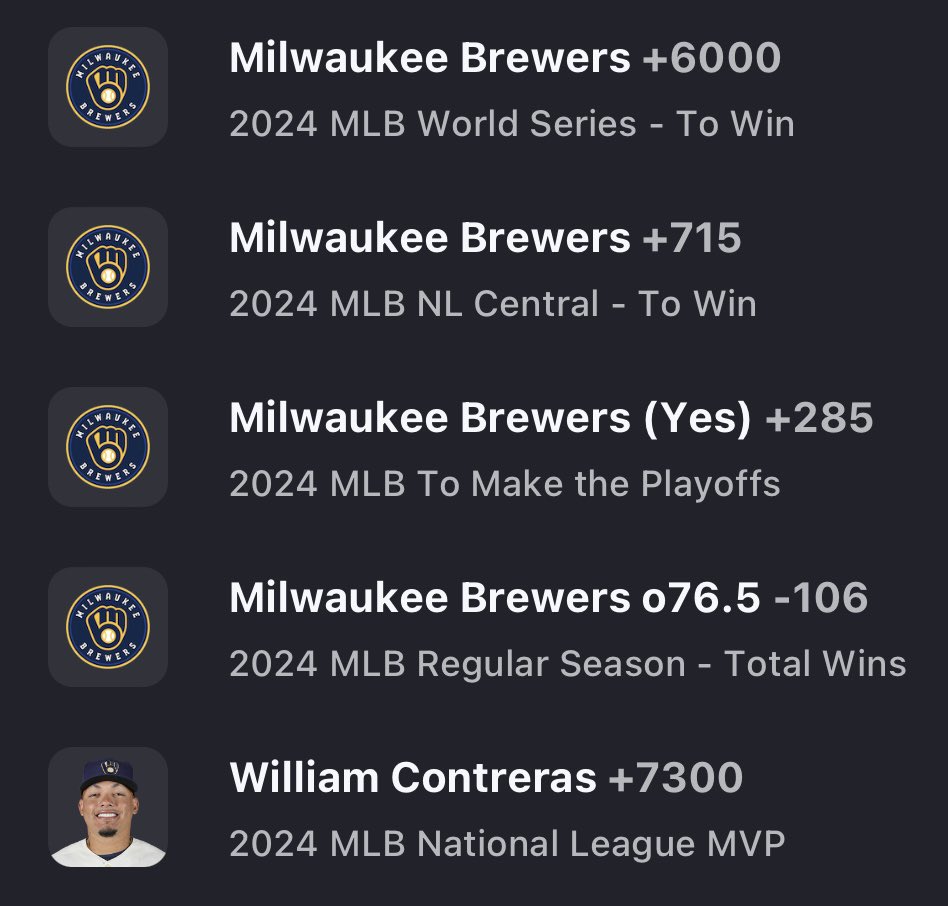 No, I’m not talking to you Cubs, Cardinals, Pirates and Reds fans. I know you won’t do this, even though you should. This is for the sports bettors or anyone else looking to place a fun bet as we get closer to the 2024 MLB season. Right now, even if you want to throw $5 on one or all of these, there are some insane Milwaukee Brewers odds available currently. And it won’t last forever.